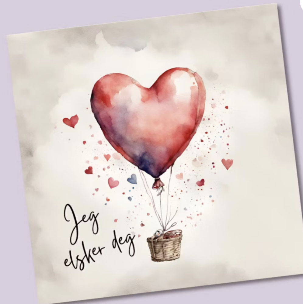 Nydelig kjærlighetskort med teksten: "Jeg elsker deg".