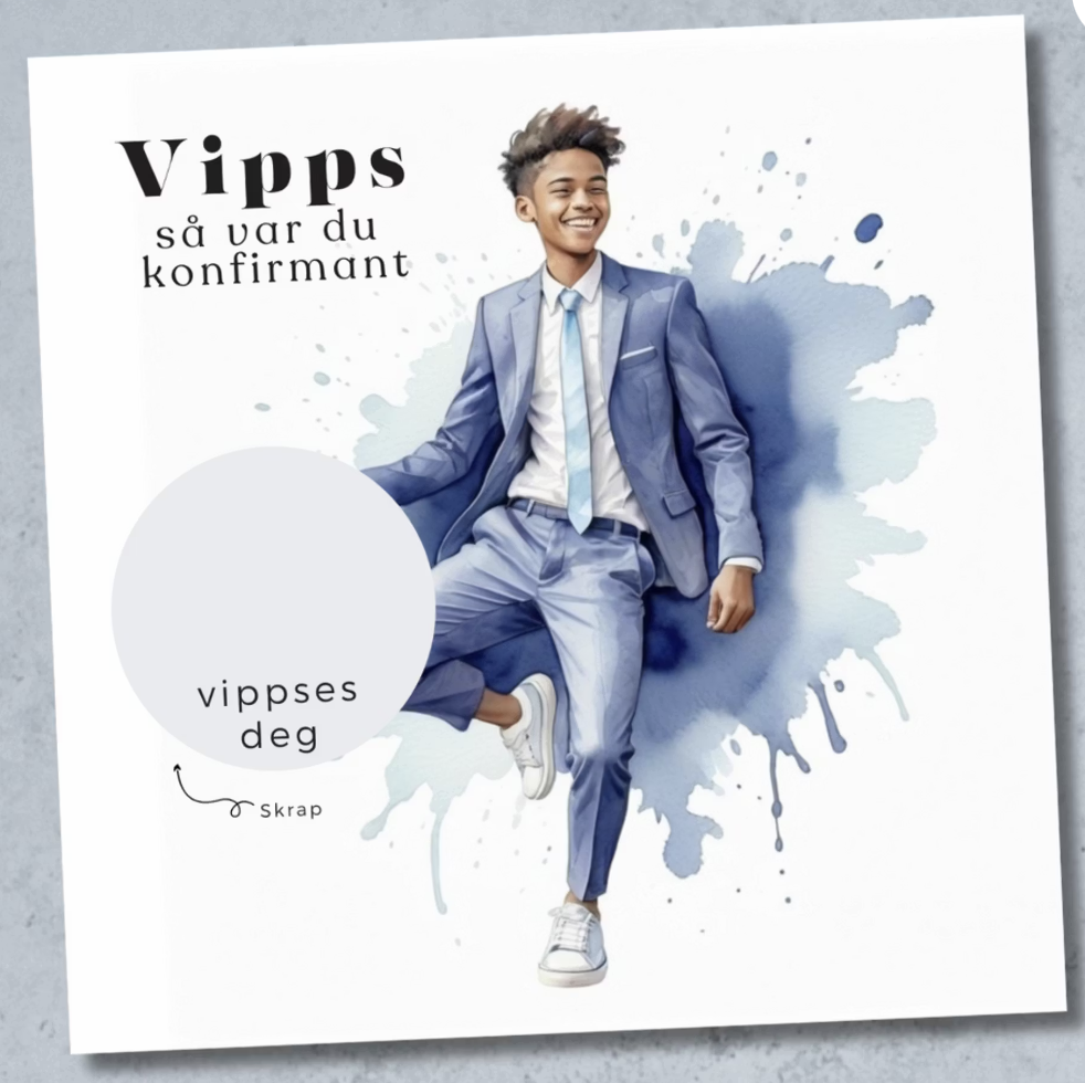 Dette stilrene konfirmasjonskortet gjør pengegaven via Vipps både personlig og spennende.