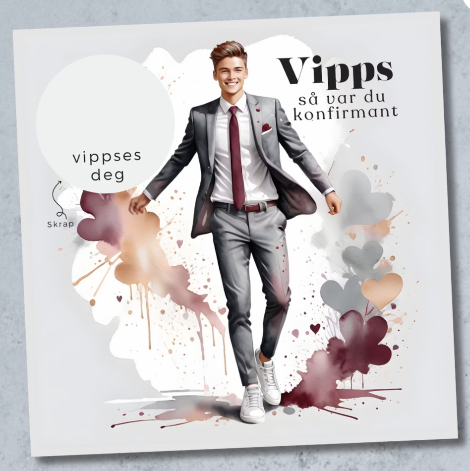 Dette stilrene konfirmasjonskortet gjør pengegaven via Vipps både personlig og spennende.