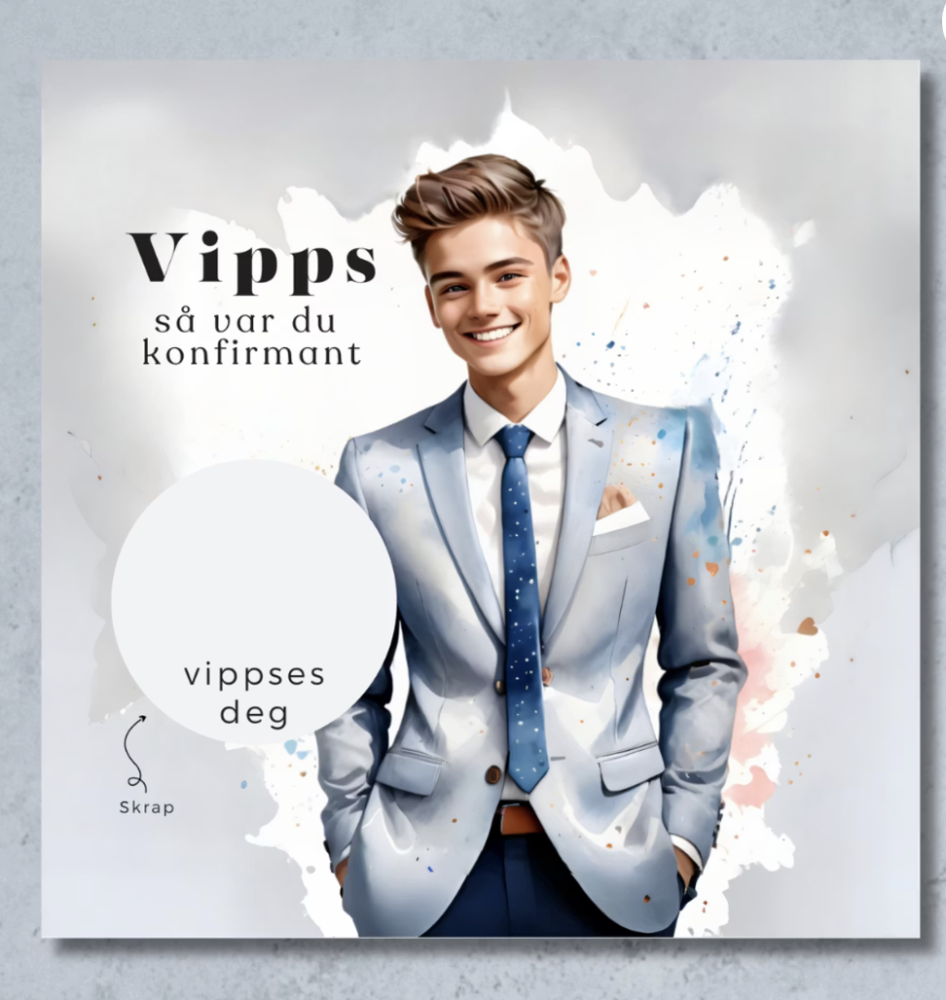 Dette stilrene konfirmasjonskortet gjør pengegaven via Vipps både personlig og spennende.
